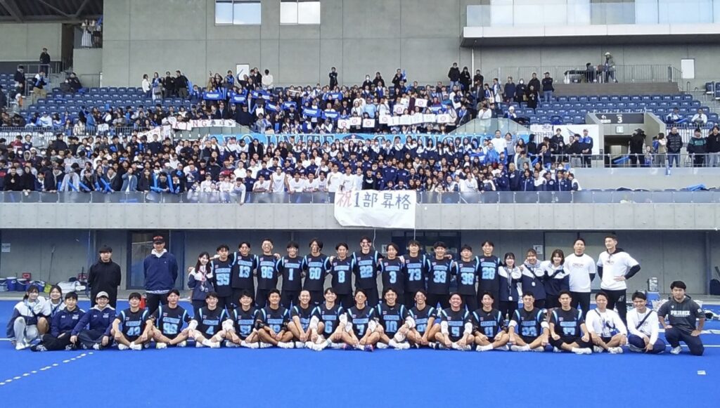 昨年度2025年チームは横浜国立大学との入れ替え戦に勝利し、悲願の一部昇格を果たしました。